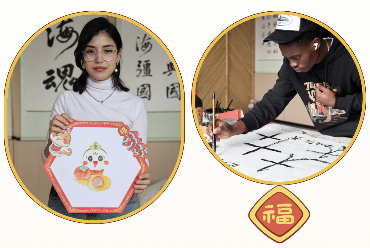 活动中,外国留学生聆听了非遗传承人对“黄县窗染花”历史与制作工艺的介绍,并亲身体验了制作过程,一幅幅精美的窗染花表达着他们对中国春节文化的独特理解和美好祝福。此外,当地书法爱好者还向留学生们赠送了书法作品。