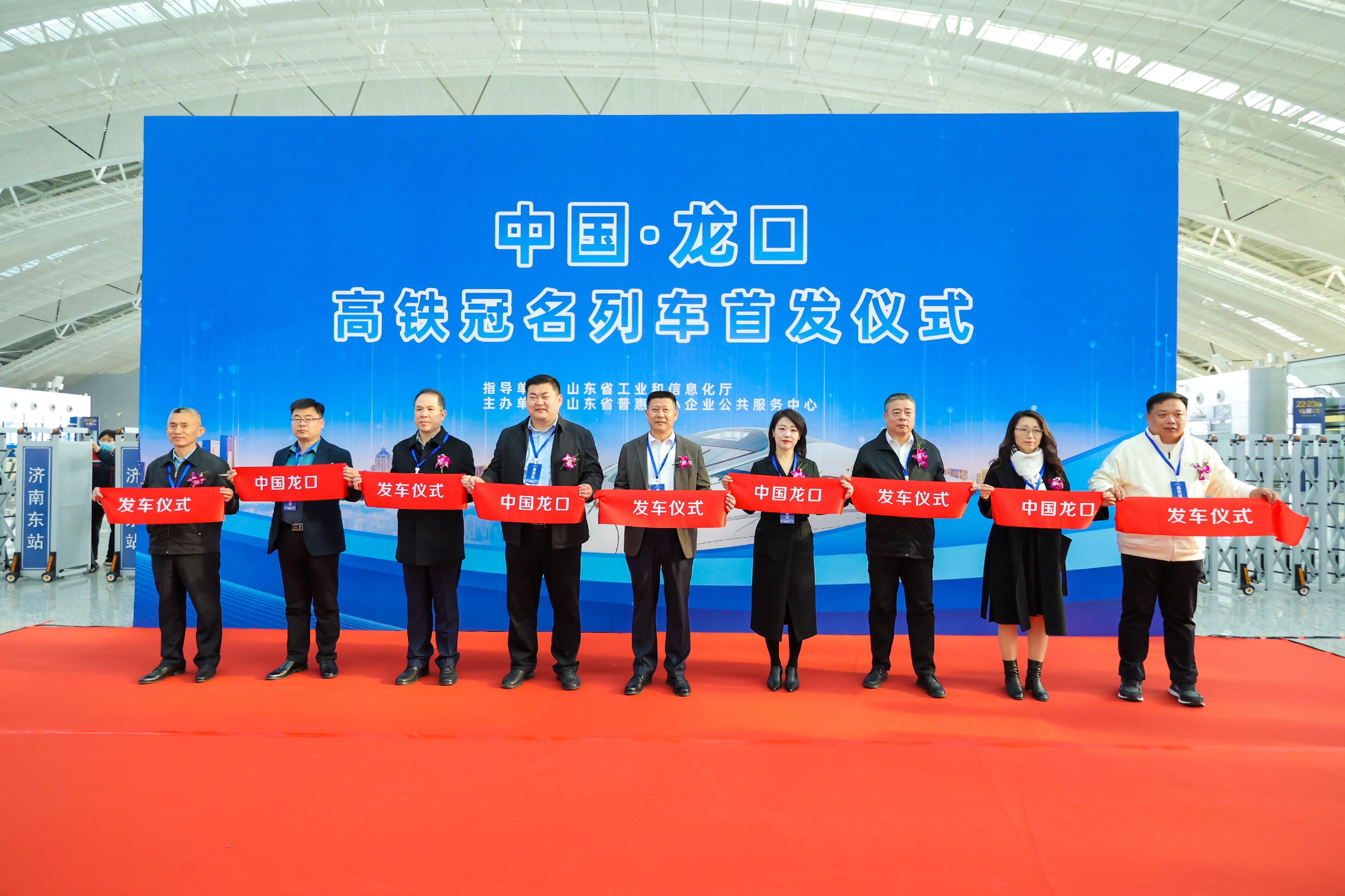 3月28日上午,“中国龙口”冠名高铁G5491次列车首发仪式在济南东站举行。山东省普惠中小企业公共服务中心、龙口市工业和信息化局及南山控股等6家龙口市企业代表出席仪式。
