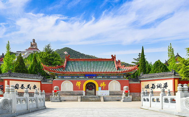 南山大佛高38.66米,重380吨,为世界第一锡青铜坐佛,护佑众生平安吉祥、诸事顺利。